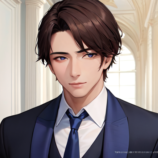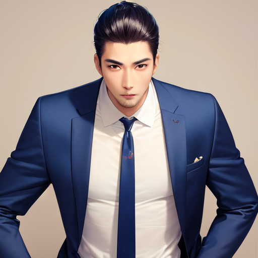 キリッとした顔のビジネスマンな男性の女性向けイラスト、自信ありげで営業が得意そう、出世もきっと早いだろう